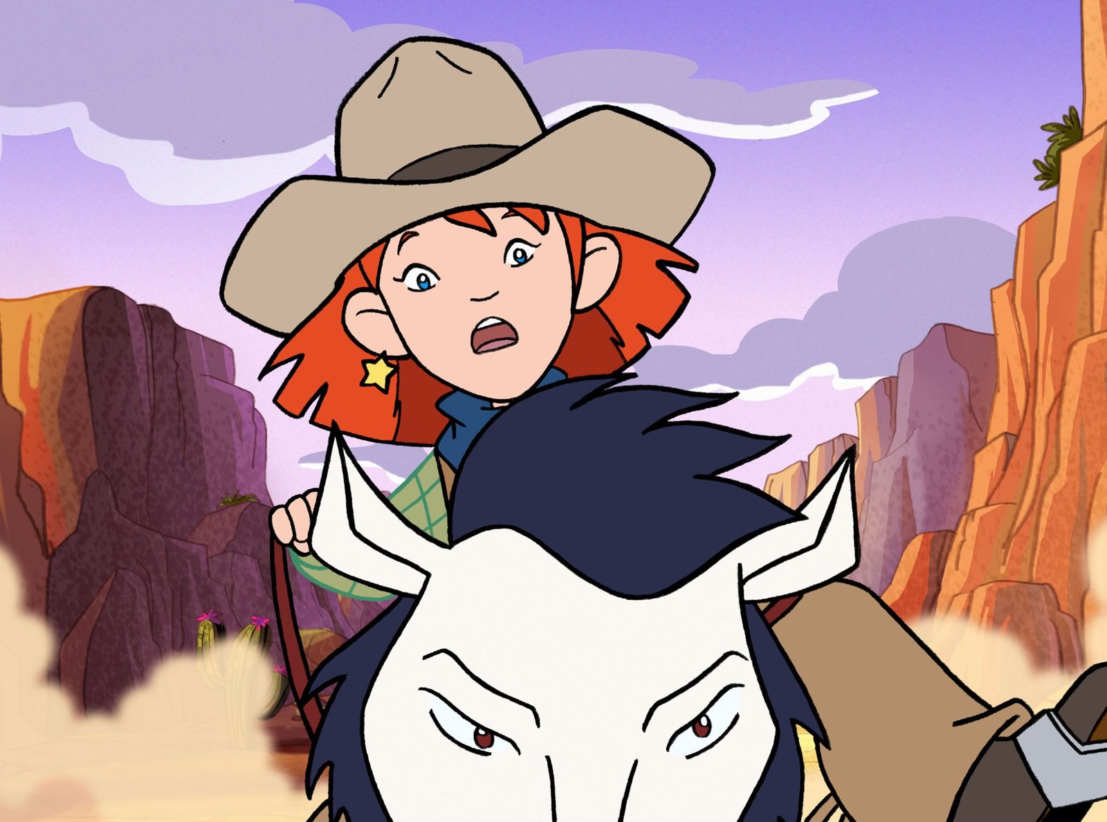 Lilli und der Wilde WestenARD/WDR HEXE LILLI, TEIL 1, "Lilli und der wilde Westen", am Sonntag (22.05.11) um 06:25 Uhr im ERSTEN. Die Wildnis ruft: Lilli reitet los, um ihren Drachen zu retten. Hektor wurde von drei geheimnisvollen Reitern entführt.Bild: © WDR/Trixter Film Gmbh