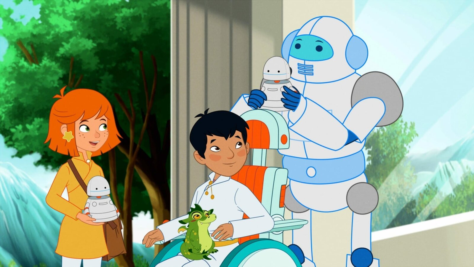 Lilli und das verrückte RoboterhausLilli und Hektor verabschieden sich von Aiko und Cerber.Bild: © WDR