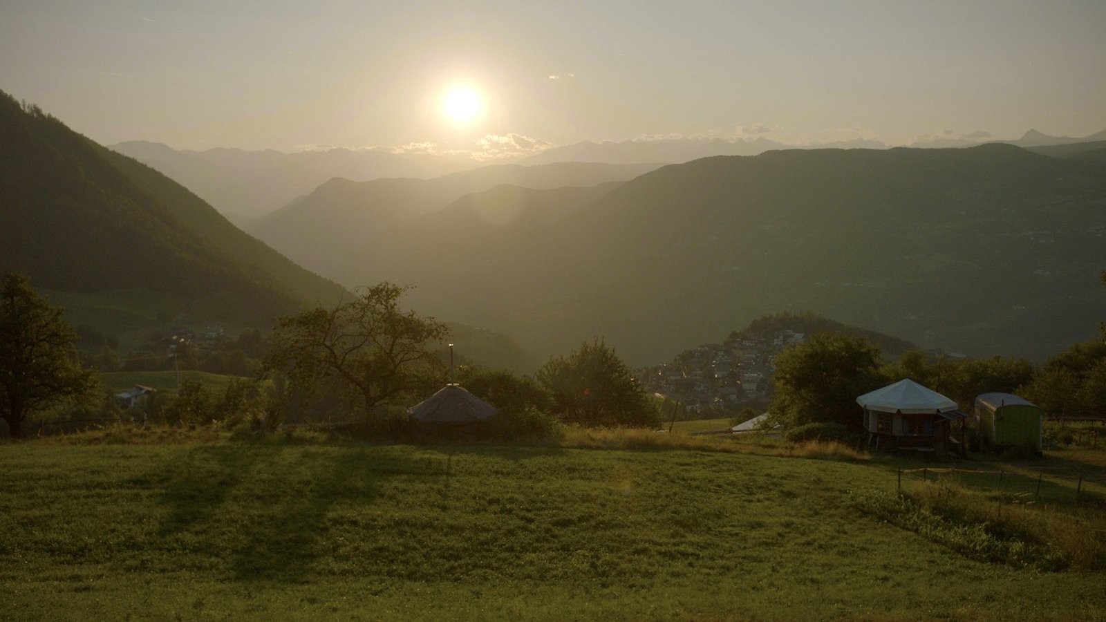 Zuhause zwischen Zinnendie Jurten von Elmar "Hube" Schroffenegger und Irene Opela bei Sonnenuntergang, Steinegg, SüdtirolBild: © ServusTV / Querschuss Film