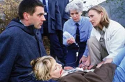 SchlussMareike (Sanna Englund, lieg.) wurde von Andys Kugel getroffen. Hendrik (Ulrich Drewes, li.), Birgit (Uta Prelle, Mi.) und Kerstin (Meike Schlüter, re.) versuchen noch zu helfen...Bild: © RTL