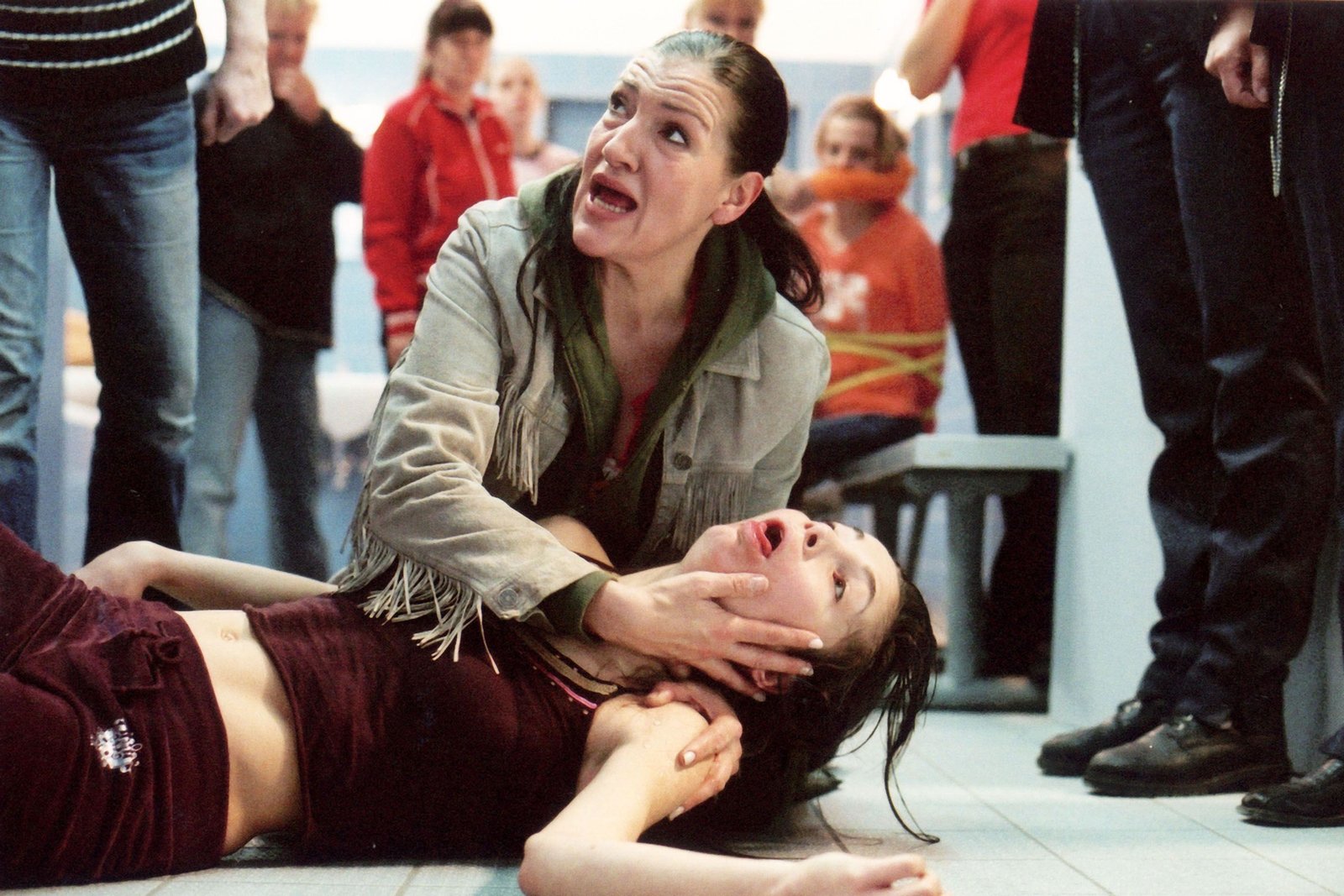 Wer einmal lügtEva (Karen Böhne, li.) droht Bine (Anette Hellwig) an, sich wieder besonders um sie zu 'kümmern'...Bild: © RTL