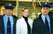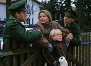 Überraschender BesuchVivi (Annette Frier), die versucht, ihren Sohn (Martin Krahn, vo.) festzuhalten, wird verhaftet (Polizist li. Komparse, Polizist re. Jörg-Uwe Schröder).Bild: © SUPER RTL