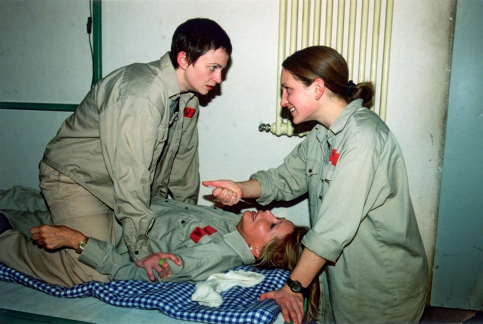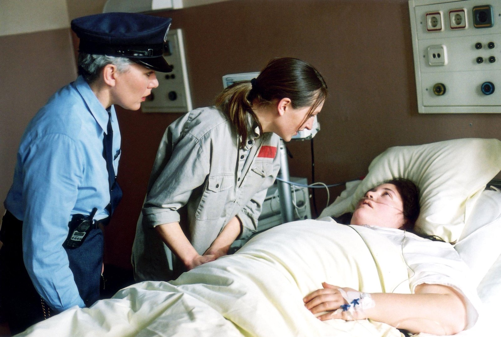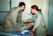 DurchgebranntDr. Christoph Stein (Atto Suttarp) und Silke Jacoby (Judith von Radetzky, re.) kümmern sich um Conny (Kristin Lenhardt), die sich im Bunker aus Verzweiflung furchtbare Kopfwunden zugefügt hat.Bild: © RTL / Durchgebrannt