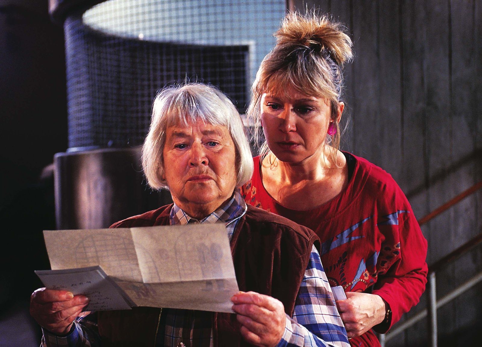 Falsche FreundeMutz (Brigitte Renner, li.) und Ilse (Christine Walter) betrachten erschrocken den Brief von Felix, der darin einen schwarzen Mann mit blitzenden Augen gezeichnet hat...Bild: © RTL / Claudius Pflug