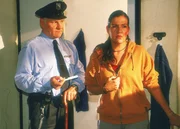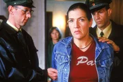 Juttas ErkenntnisWalter (Katy Karrenbauer, vorne) wird verhaftet, weil Jutta (Claudia Loerding, hi.) sie erpresst hat. (Polizisten Komparsen)Bild: © RTL