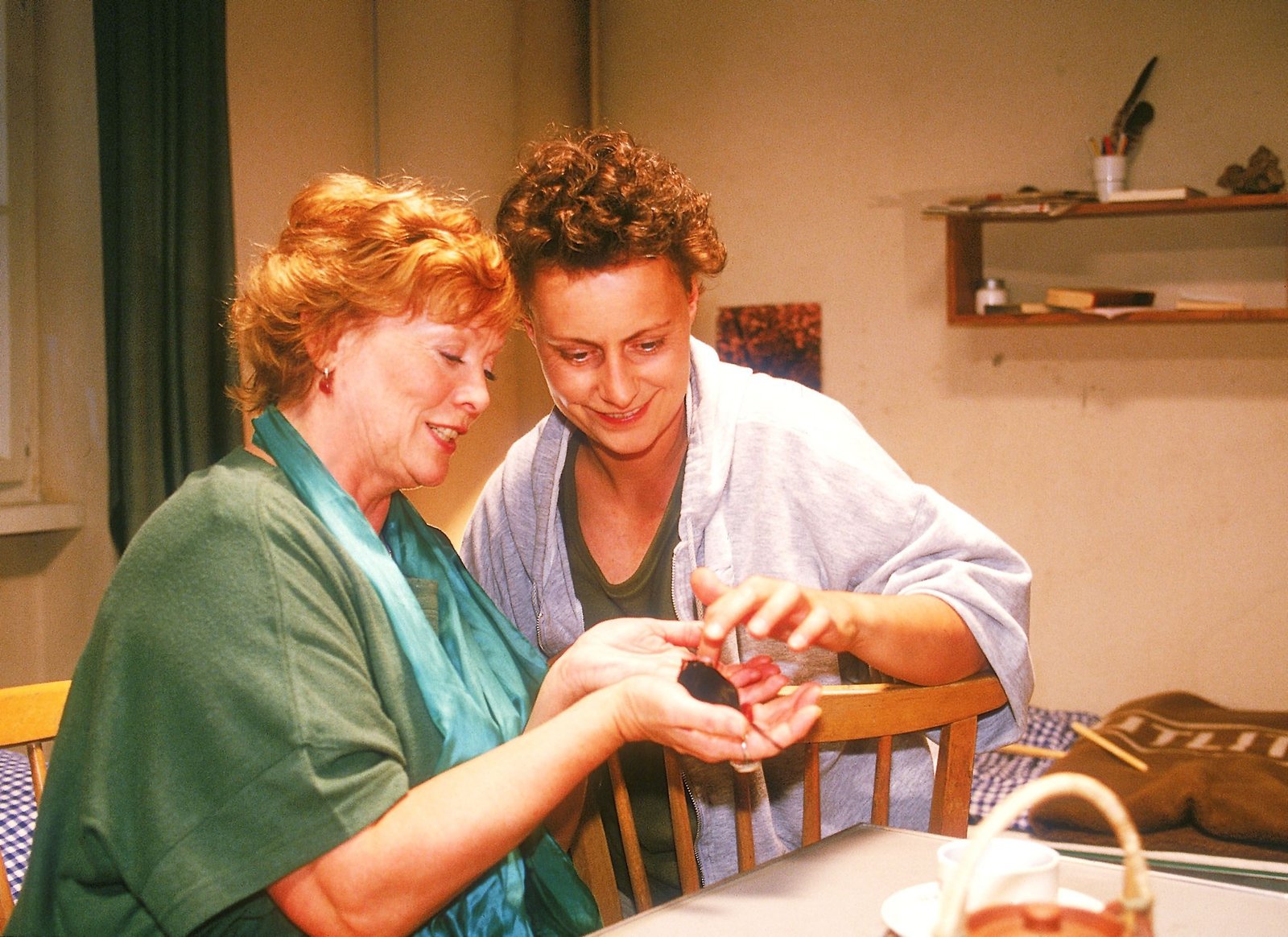 Von Mäusen und MenschenElena (Karin Ugowski, li.) beruhigt die 'Tierfreundin' Melanie (Sigrid M. Schnückel, re.) indem sie ihr beichtet, dass sie nicht wirklich Mäuse tötet, um Weissagungen machen zu können. Sie freunden sich an und beschliessen gemeinsame Sache zu machen.Bild: © RTL