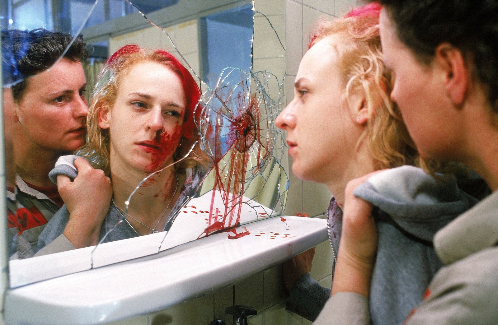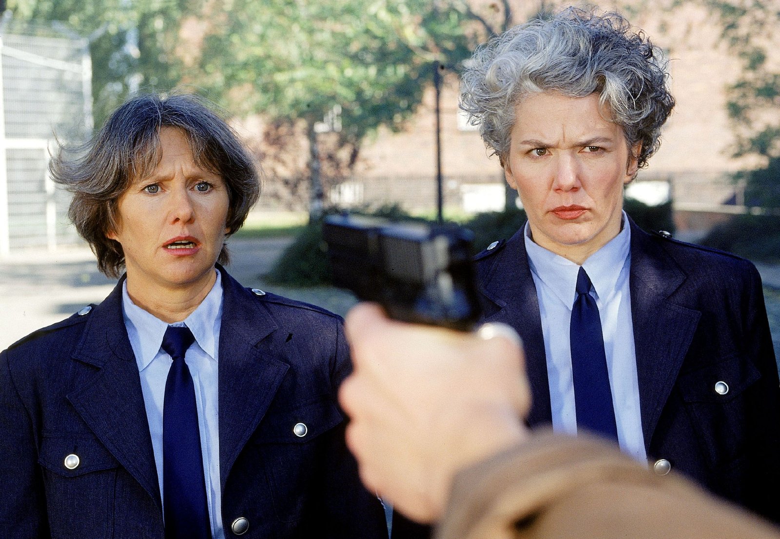 Gefährliche SchwesternJutta Adler (Claudia Loerding, li.) und Birgit Schnoor (Uta Prelle) werden von Mareike und Martina Vattke mit einer Waffe bedroht, die das berüchtigte Geschwisterpaar der Wachmannschaft gestohlen hat.Bild: © RTL