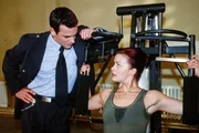 Diagnose positivTom (Marcus Grüsser) versucht sich Annas (Bettina Kramer) 'öffentliche' Zuneigung vom Hals zu halten.Bild: © MG RTL D