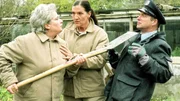 SchweinereienMit Hilfe von Walter (Katy Karrenbauer, Mi.) ist Uschi (Barbara Freier) Kittler (Egon Hofmann) auf die Spur gekommen, der in der Gärtnerei etwas sucht. Unter massivem Druck bricht er ein und gesteht, Nora hätte angeblich einen Unfall gehabt und wurde in der Gärtnerei vergraben...Bild: © TVNOW / Richard Hübner