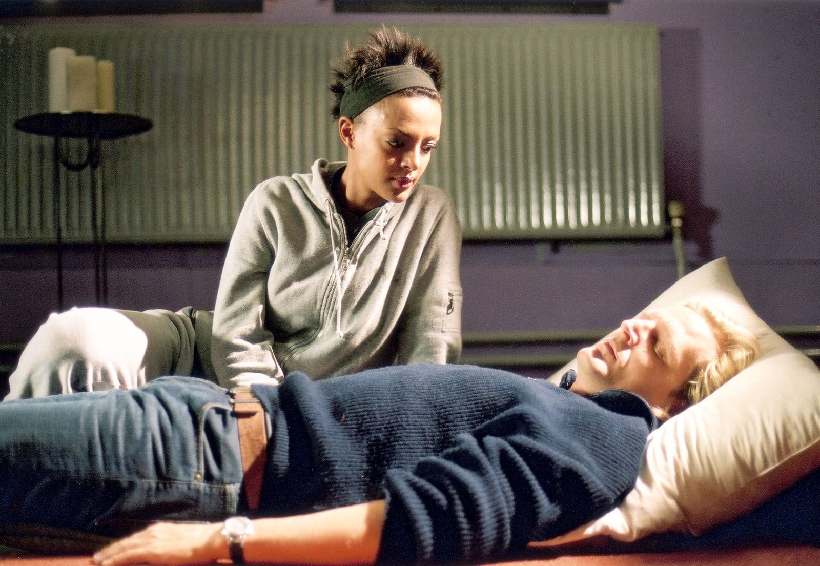 Jenseits von AfrikaJohnny (Sascha Gluth) hat Wilhelmina (Dennenesch Zoude) Kirchenasyl gewährt, weil ihr die Abschiebung droht. Am Morgen wachen sie nebeneinander auf.Bild: © Passion