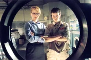VendettaAndrea (Jana Becker, li.) und die neue Schließer-Praktikantin Annika (Sylwia von Wildburg) experimentieren für ihre Falschgeldproduktion und waschen Papierproben in der Waschmaschine.Bild: © RTL / Richard Hübner