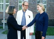 Kampf um FreiheitJutta (Claudia Loerding, li.) wünscht Blondie (Victoria Madincea, re.) alles Gute für ihr Leben in der Freiheit (Mi. Atto Suttarp als Dr. Stein).Bild: © RTL
