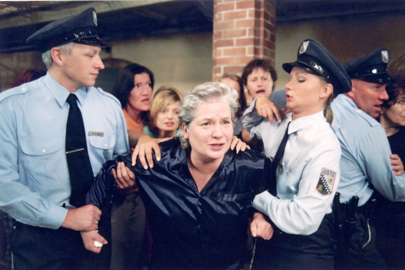 Die Rote MambaDa Jutta Adler heute wieder ihren Dienst antritt, kommt Uschi (Barbara Freier, Mi.) als mutmaßliche Täterin bis zum Transport nach Preekow in Isolationshaft. Uschi wird unter dem Protest der anderen abgeführt...Bild: © Passion