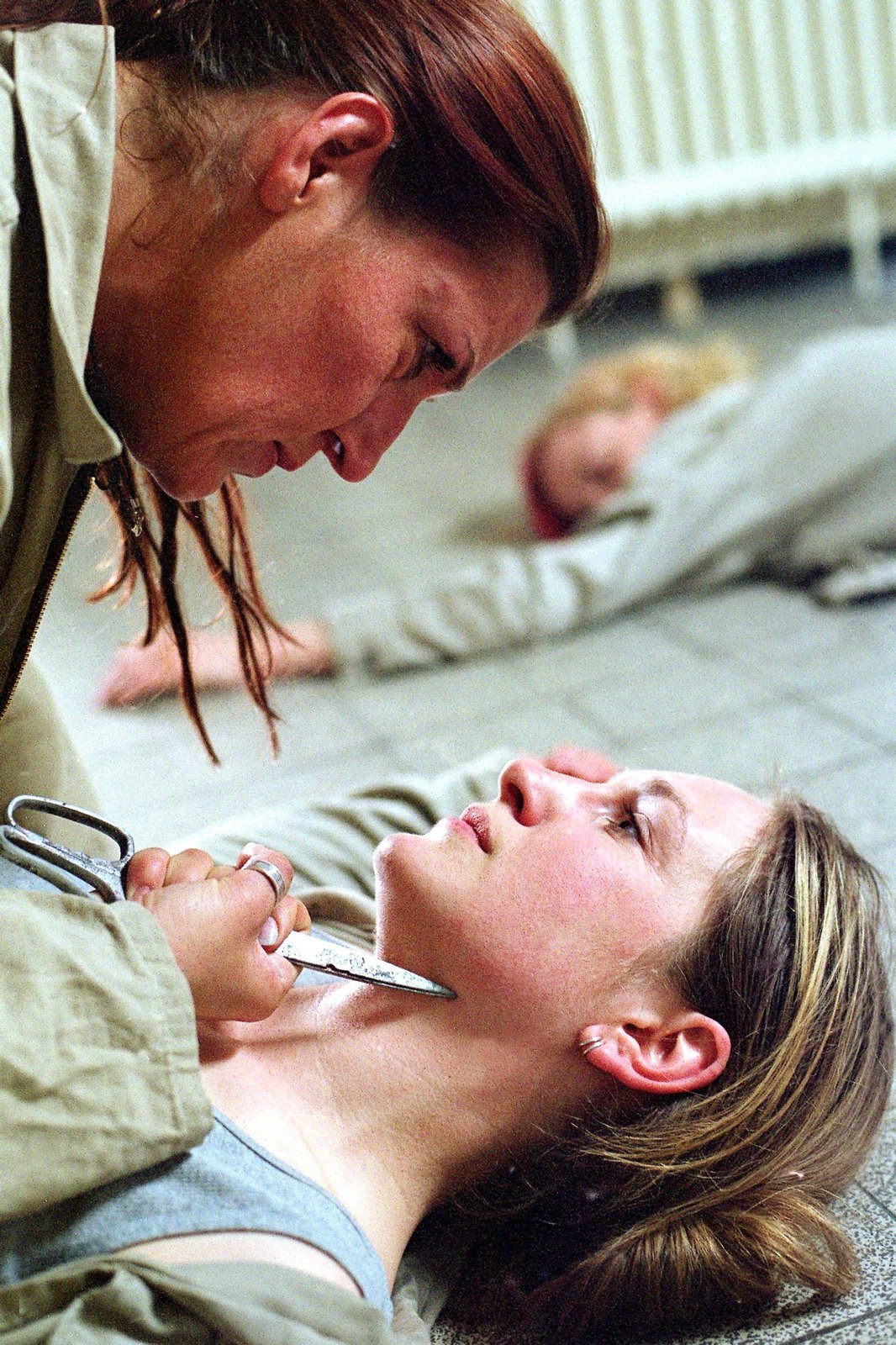 Liebe ist stärker als der TodKalle (Isabelle Höpfner, oben) greift Schnoor (Uta Prelle, lieg.) an, von der sie glaubt, vom sexuellen Missbrauch an Nancy gewusst zu haben...Bild: © RTL / Richard Hübner