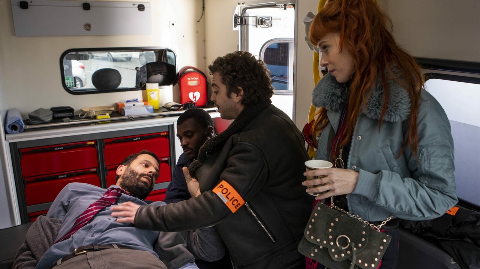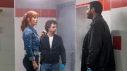 Blinde KuhKaradec liegt am Boden (Mehdi Nebbou). Er wurde mit einer Betäubung außer Gefecht gesetzt. (v.l.n.r. Karadec, Rechtsmediziner (Christopher Bayemi), Gilles (Bruno Sanches), Morgane (Audrey Fleurot))Bild: © NDR/PHLIPPE LE ROUX – THIBAUT GRABHERR/SEPTEMBREPRODUCTIONS/TF1