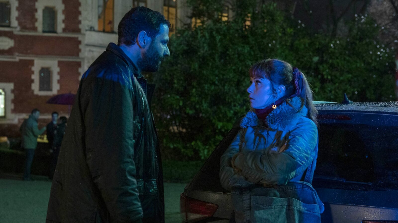Schrecklicher GiftfroschKaradec (Mehdi Nebbou) ist wütend. Der Einsatz hat ihn völlig durchnässt. Celine (Marie Denarnaud) versucht ihn zu beruhigen.Bild: © NDR/PHLIPPE LE ROUX – THIBAUT GRABHERR/SEPTEMBREPRODUCTIONS/TF1