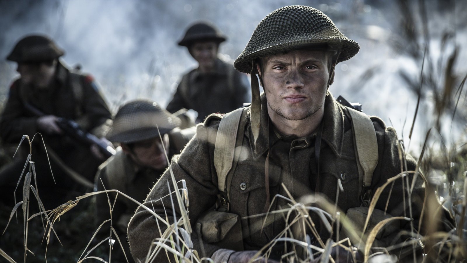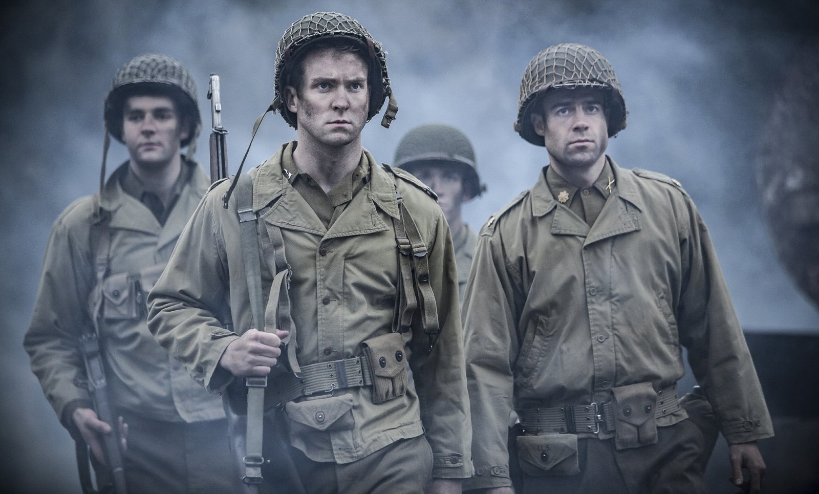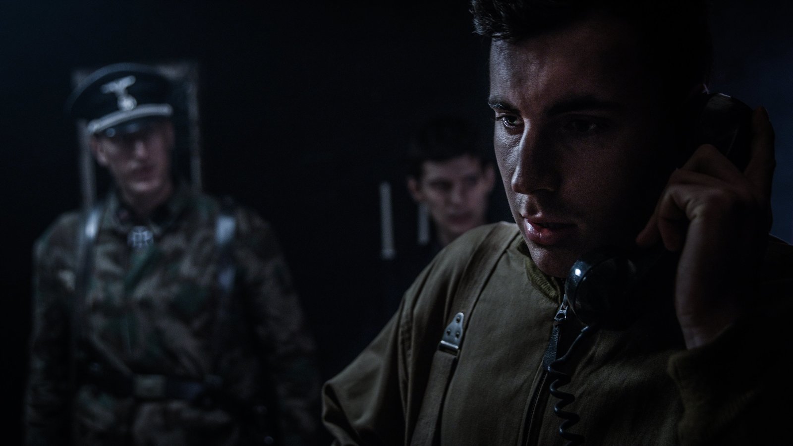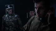 Festung der NazisCapt. Sidney Smith, Maj. Tom Dallas, and Lt. Kelton look out onto the battlefield. L-R Jules Ross, Harrison MacDonald, Jesse Irving, Kevin Rosmer.Bild: © MG RTL D / Holdout Product