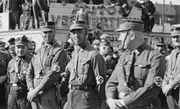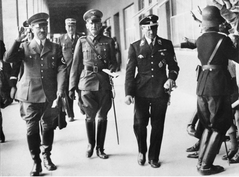 Olympia 1936Der Führer mit dem Kommandierenden General des III. Armeekorps v. Witzleben und dem SS Obergruppenführer Joseph Dietrich beim Verlassen des Schwimmstadions.Bild: © CC0