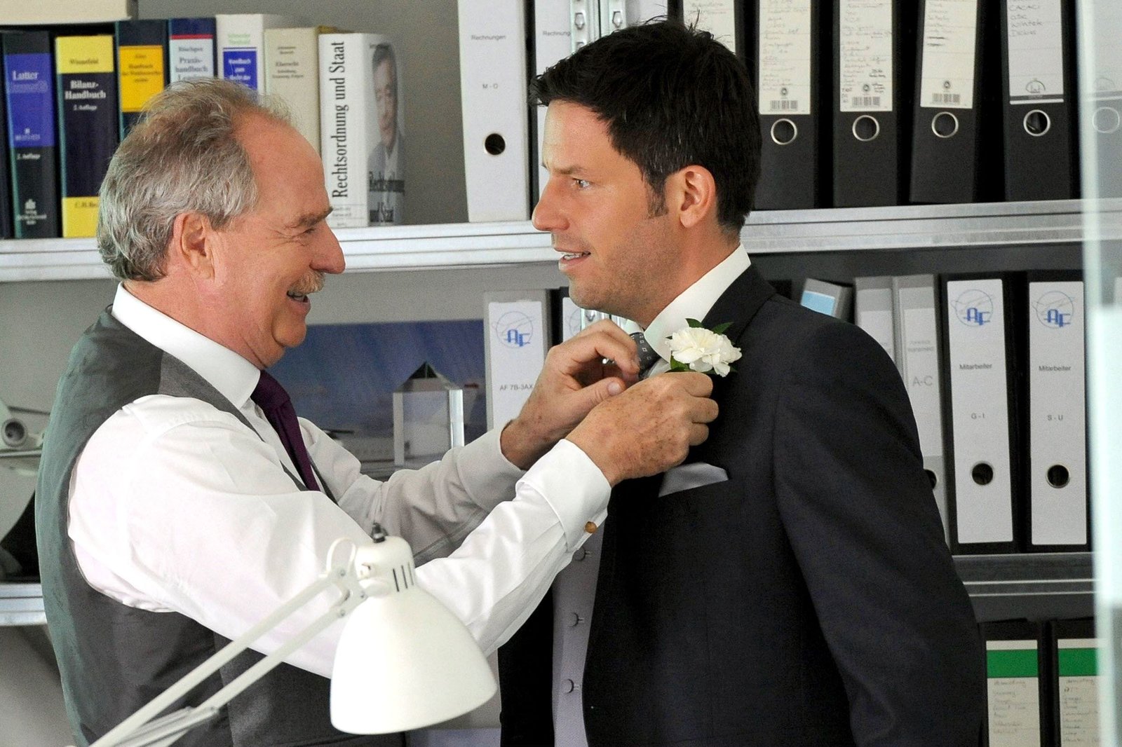 HochzeitenBernhard (Friedrich von Thun) freut sich, dass seine rechte Hand, der aufstrebende Ingenieur Ingo (Tim Bergmann) seine Tochter heiraten will.Bild: © SWR/ARD Degeto/Caro von Saurma
