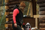 Regnerischer ZwischenfallMarty Raney takes a quick smoke back whilst building cabin.Bild: © Scott Sandman / Discovery Channel / Discovery Communications, LLC
