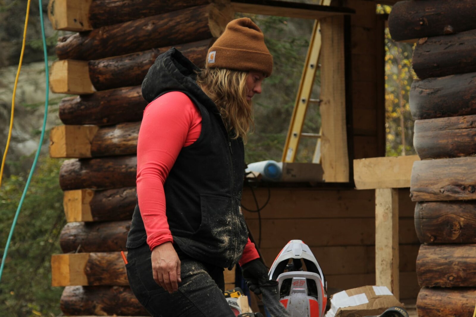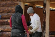 Regnerischer ZwischenfallMisty and Maciah are cutting pieces of wood for windows at their cabin.Bild: © Discovery Channel / Discovery Communications, LLC