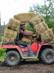 Schwieriger MaterialtransportMatt Raney transports bales of hey via 4wheeler from one side of the 40 to the other.Bild: © Scott Sandman / Discovery Channel / Discovery Communications, LLC