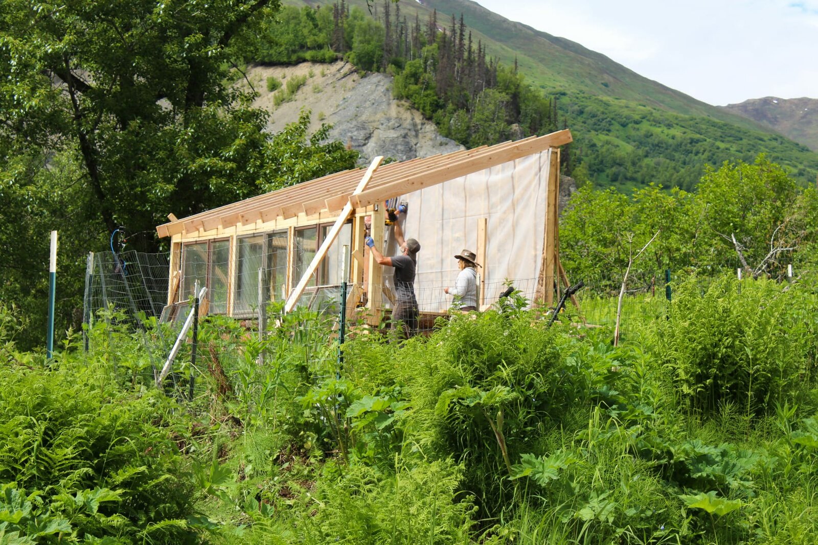 Wohnen auf der KlippeMisty and Maciah Raney add finishing touches to greenhouse.Bild: © Scott Sandman / Discovery Communications, LLC