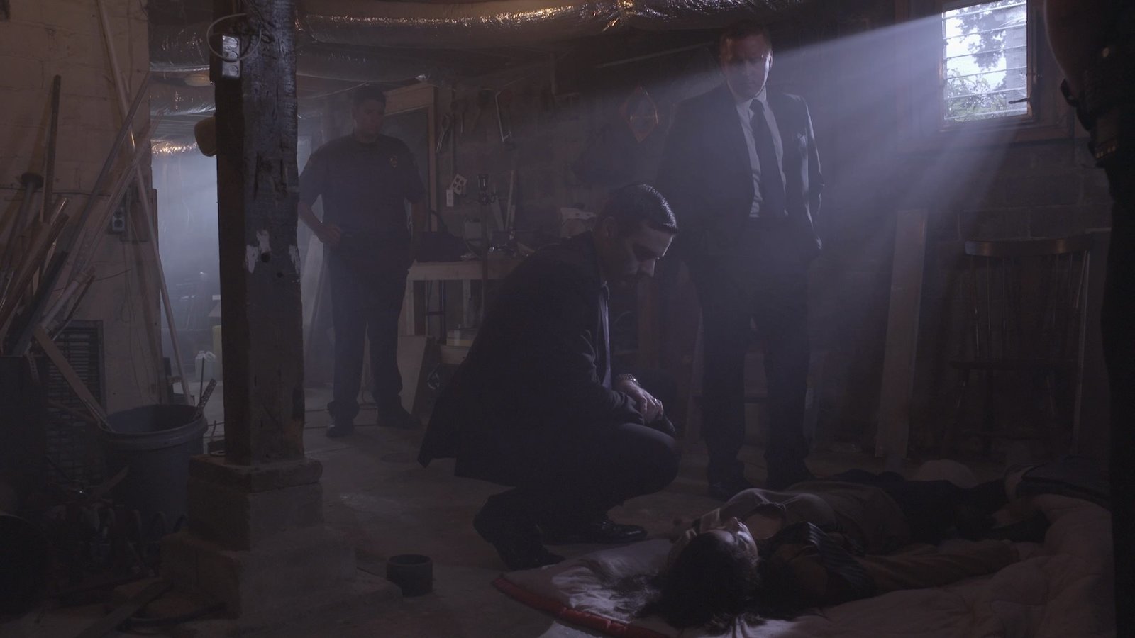 Die Stimme aus dem GrabWer hat die Teenagerin getötet? An einem zweiten Tatort in einem Keller finden Joe Kenda (Carl Marino, M.) und sein Team eine weitere Leiche. Wie hänge die beiden Todesfälle zusammen?Bild: © MMXV DISCOVERY COMMUNICATIONS, LLC. Lizenzbild frei