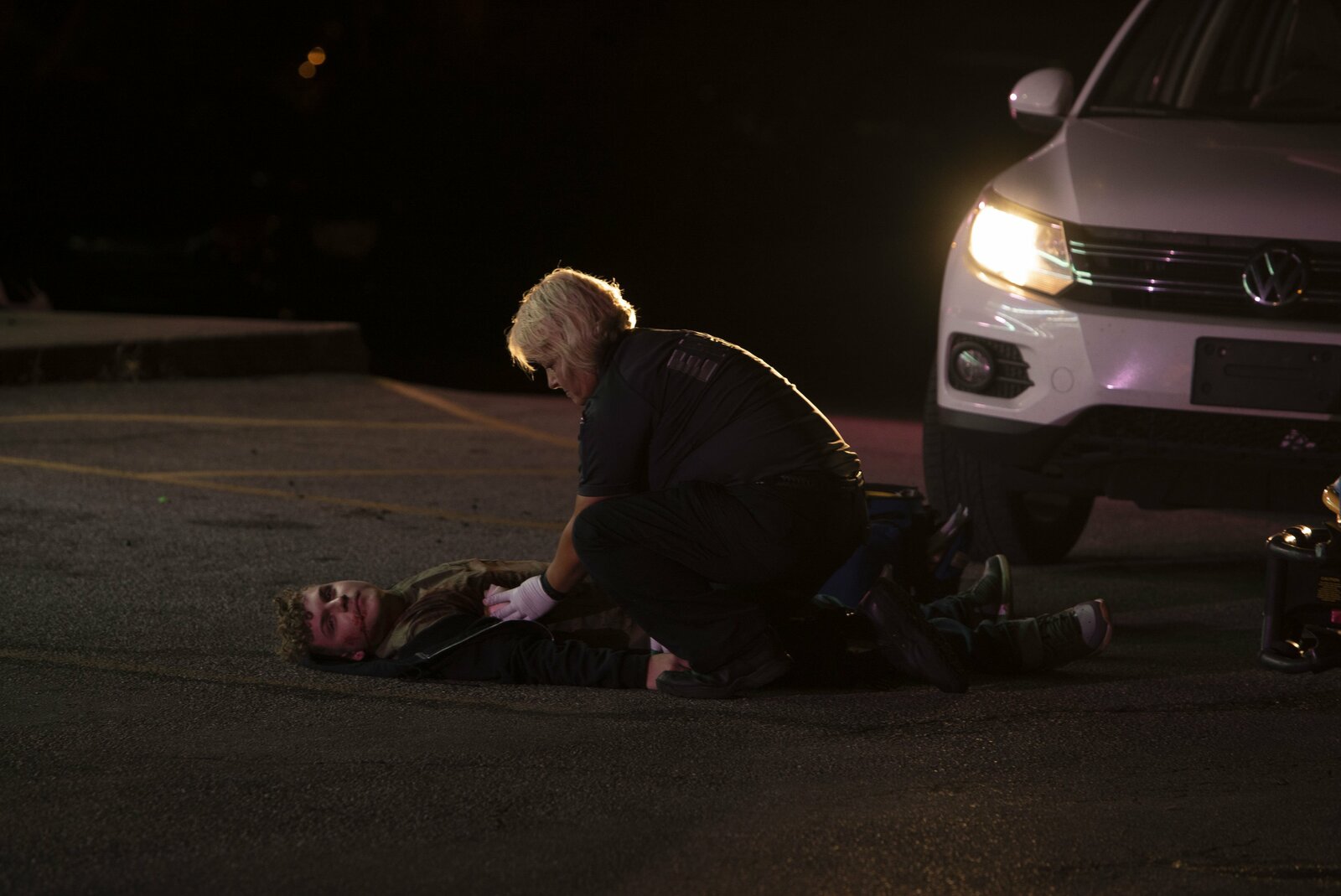 Tote reden dochDie Polizei findet auf einem Parkplatz die Leiche von Army-Veteran Brandon Pensa. Sein Oberkörper ist übersät mit unzähligen Messerstichen. Lieutenant Joe Kenda (Carl Marino, M.) und sein Team suchen am Tatort nach Hinweisen auf den Mörder. Können sie ihn aufspüren und hinter Gitter bringen?Bild: © Jupiter Entertainment Lizenzbild frei