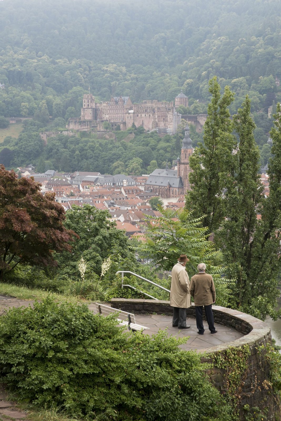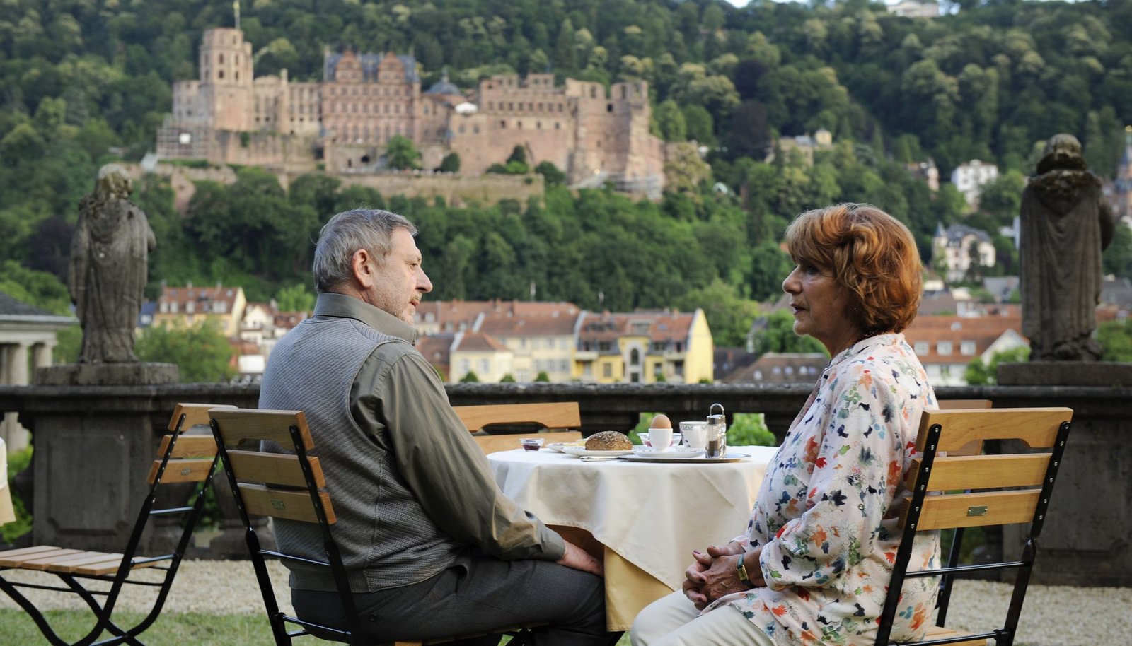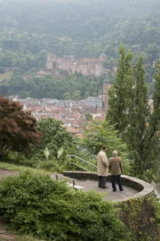Kramer gegen KramerJulius Verboom (Bram van der Vlugt, links) und Günter (Rüdiger Vogler) vor der malerischen Residenz- und Universitätsstadt Heidelberg.Bild: © ARD Degeto/ARD Degeto/Thomas Kost