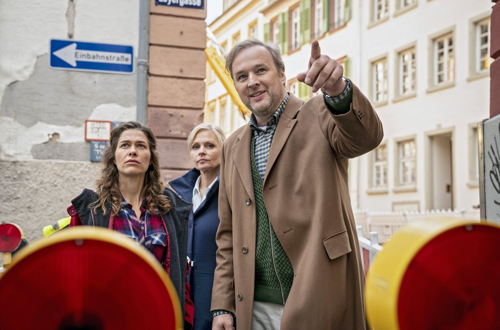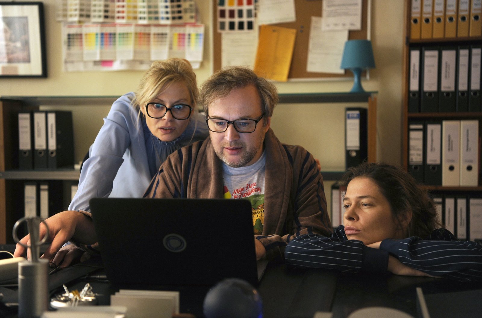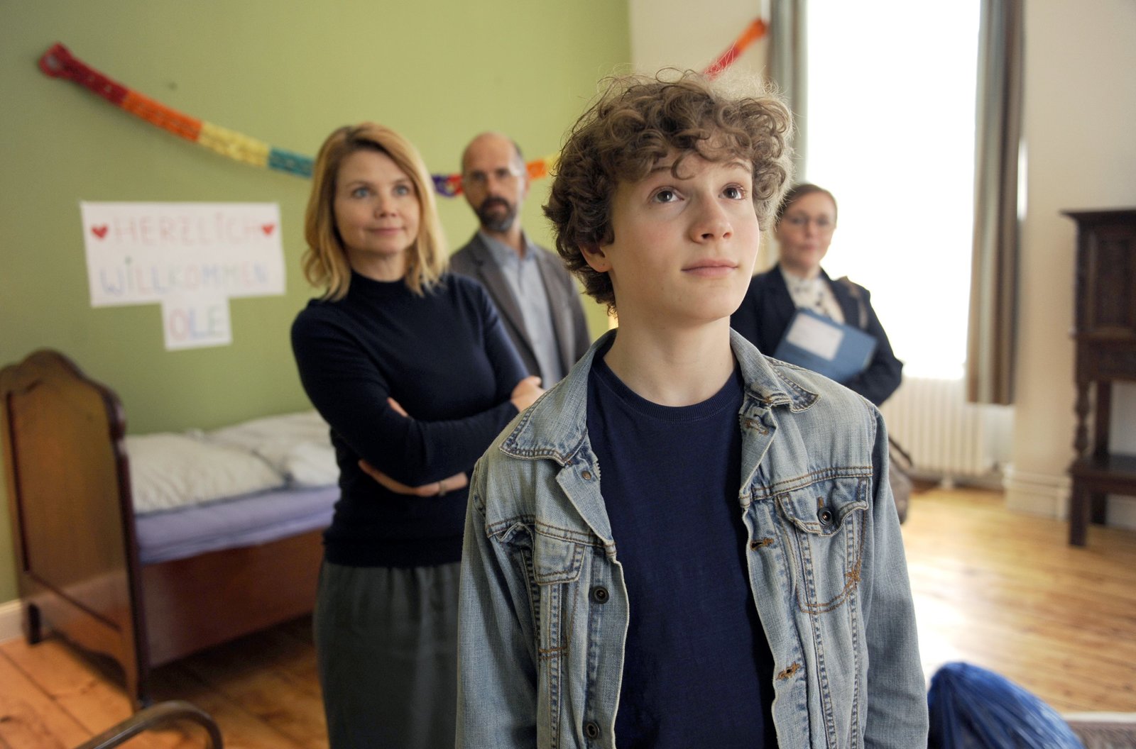 ... Vater sein dagegen sehrOle (Nico Ramon Kleemann) zieht zu Anette (Annette Frier, li.) und Ingolf (Christoph Maria Herbst) ins Hotel Heidelberg. Die Sozialarbeiterin Ela Paul (Frau Wilsneck) begleitet ihn dabei und begutachtet sein neues Zuhause.Bild: © WDR/ARD Degeto/Bernd Spauke