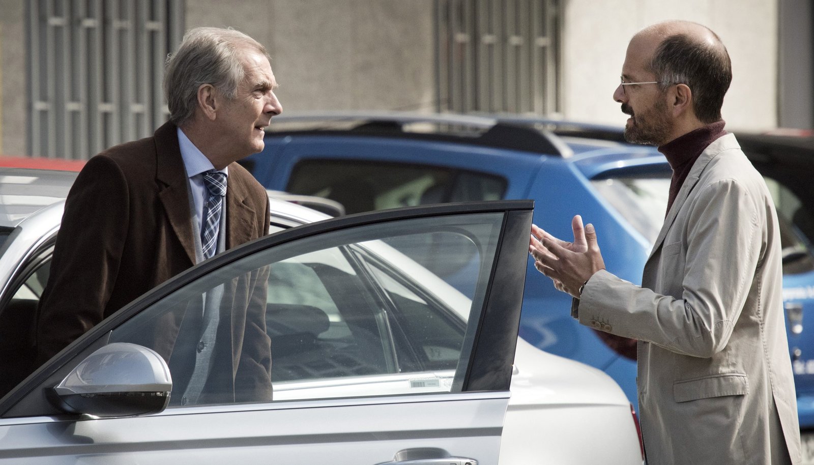 Kommen und GehenIngolf (Christoph Maria Herbst, rechts) sagt seinem Vater Werner Muthesius (Peter Prager) die Meinung.Bild: © ARD Degeto/Martin Menke