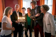 ... wer sich ewig bindetAnnette (Annette Frier, v. l. n. r.) wird zum Geburtstag von Ingolf (Christoph Maria Herbst), Ole (Nico Kleemann), Floriane (Nele Kiper), Stefan (Stephan Grossmann) und Ingrid (Kathrin Ackermann) mit einer Torte überrascht.Bild: © ARD Degeto/Frank Dicks
