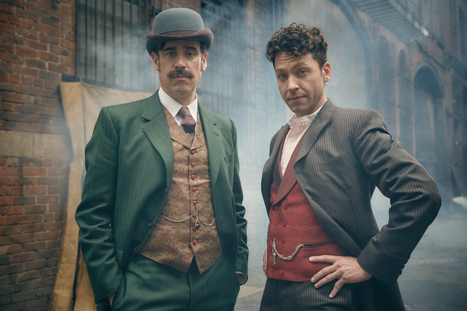 Vergeltung aus einem früheren Leben?Arthur Conan Doyle (Stephen Mangan, l.), Harry Houdini (Michael Weston)Bild: © RTL Crime