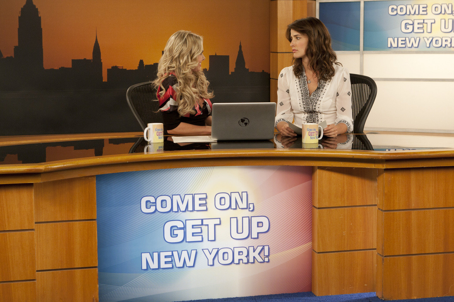 Wir kümmern unsWährend sich Zoey für Teds Seminar angemeldet hat und ihre Kommilitonen manipuliert, hat Robin (Cobie Smulders, r.) Ärger mit ihrer Co-Moderatorin Becky (Laura Bell Bundy, l.) ...Bild: © 20th Century Fox International Television Lizenzbild frei