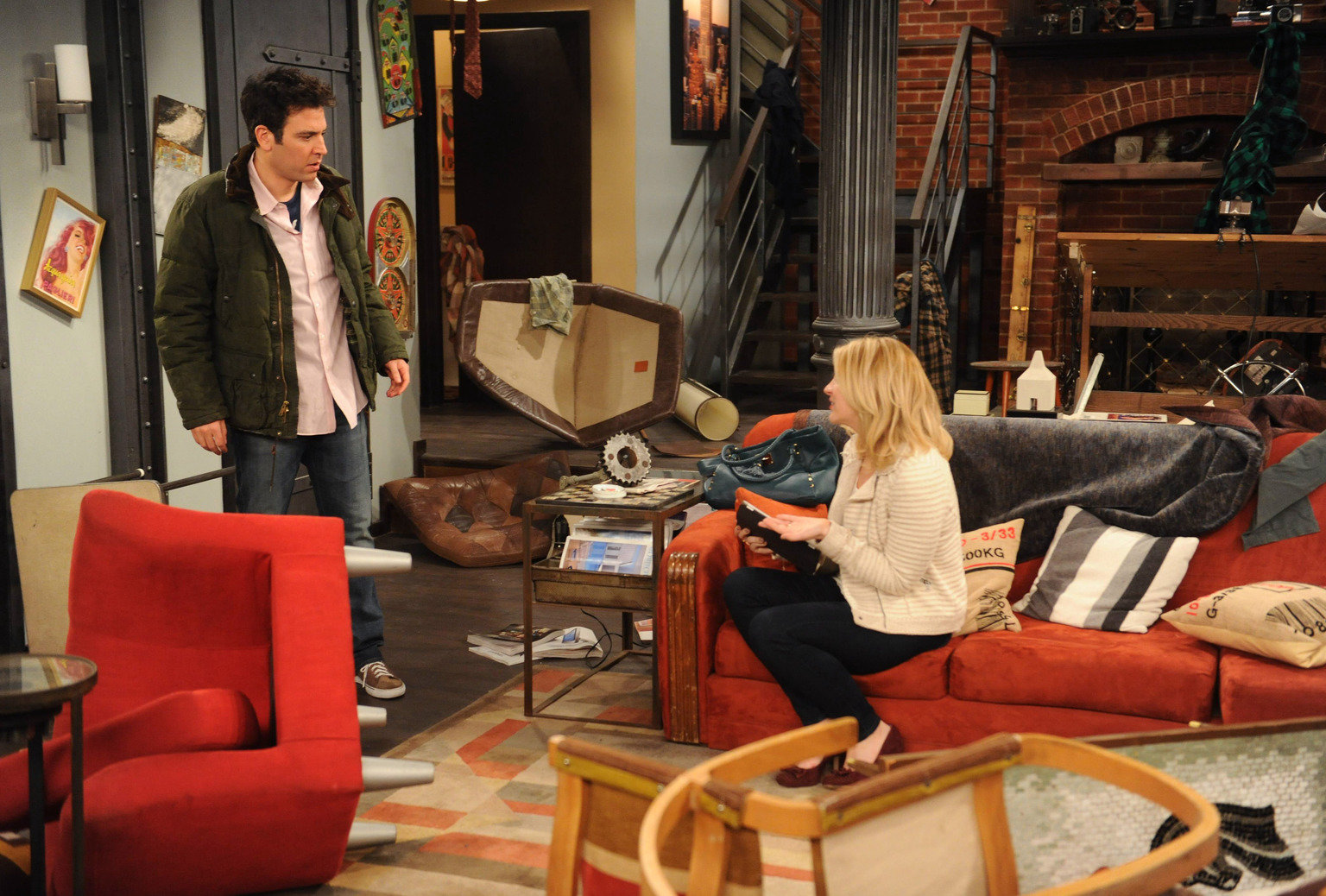 Immer Ärger mit BarneyTed (Josh Radnor, l.) ist entsetzt, als er nach Hause kommt und Jeanette (Abby Elliott, r.) die ganze Wohnung verwüstet hat - wegen einer E-Mail ...Bild: © 2013 Twentieth Century Fox Film Corporation. All rights reserved. Lizenzbild frei