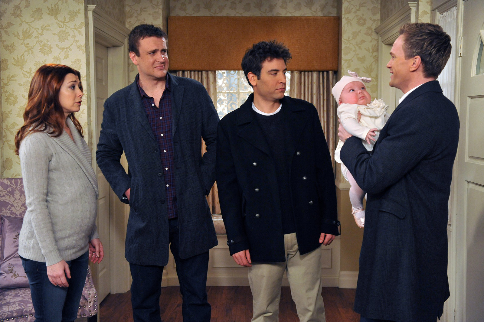 Plan BWährend Lily (Alyson Hannigan, l.) und Marshall (Jason Segel, 2.v.l.) nicht ausschließen nach Long Island zu ziehen, haben Barney (Neil Patrick Harris, r.) und Ted (Josh Radnor, 2.v.r) ganz andere PläneBild: © 20th Century Fox International Television