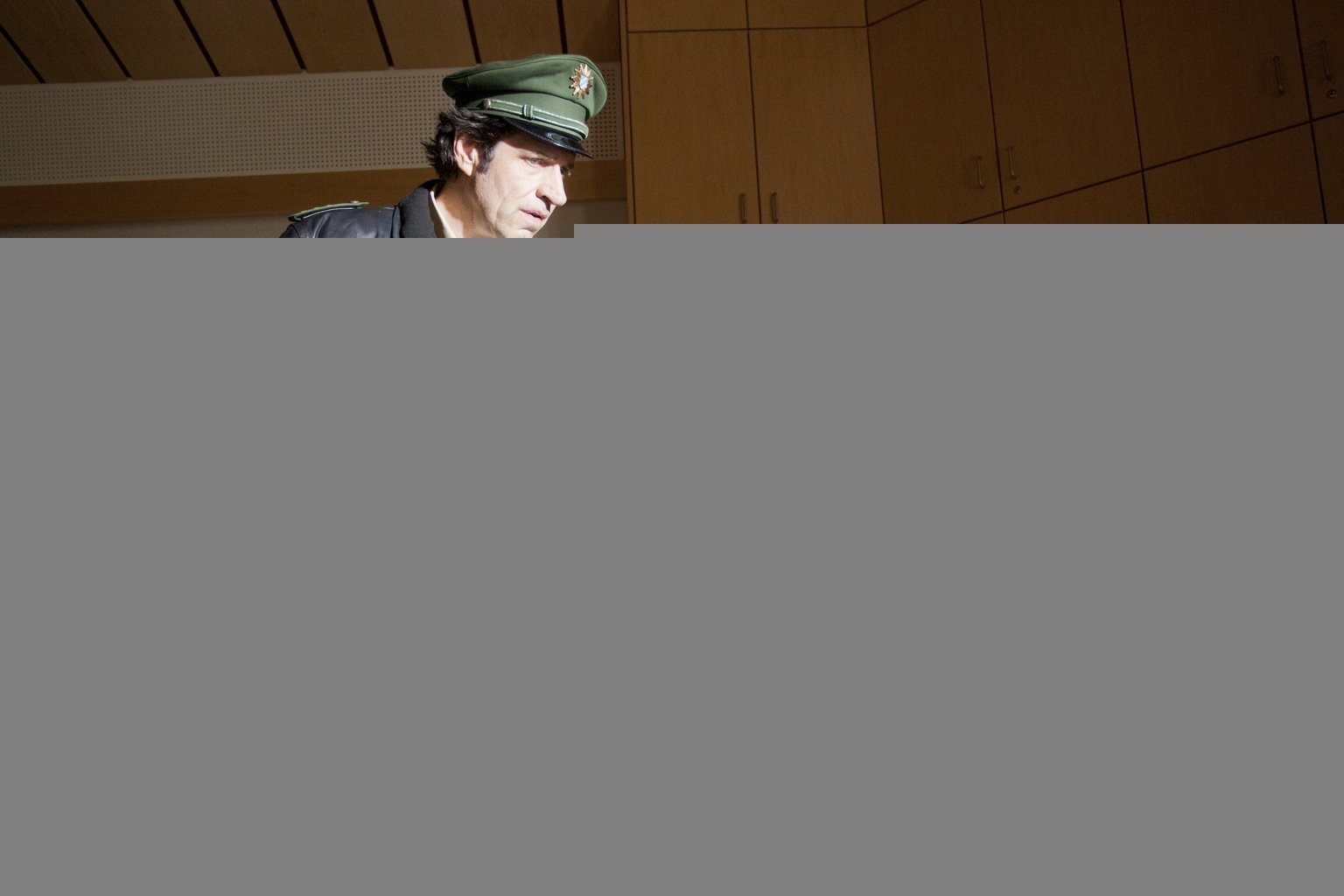Ein Ton zu wenigIm Probenraum der örtlichen Blaskapelle steckt Peter Händel mit zertrümmertem Schädel kopfüber im Schalltrichter einer Tuba. Kein schöner Anblick für Staller (Helmfried von Lüttichau) ...Bild: © TMG Lizenzbild frei