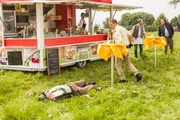 Schwein gehabtStaller (Helmfried von Lüttichau - lays on the grass) scheint die Biowurst nicht vertragen zu haben. Wie dramatisch ist die Situation tatsächlich?Bild: © TMG / Chris Hirschhäuser