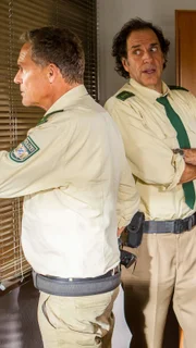 Rauchen ist tödlichHubert (Christian Tramitz, r.) ist sauer, weil Staller (Helmfried von Lüttichau, l.) nicht einsatzbereit ist.Bild: © TMG