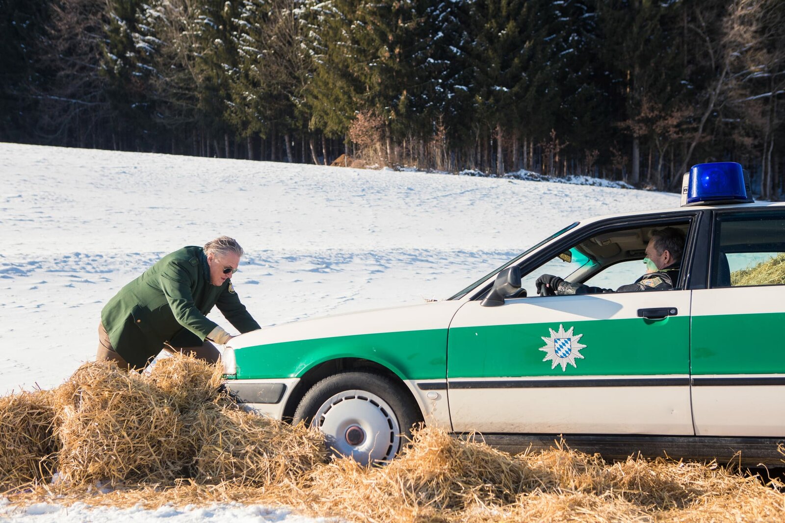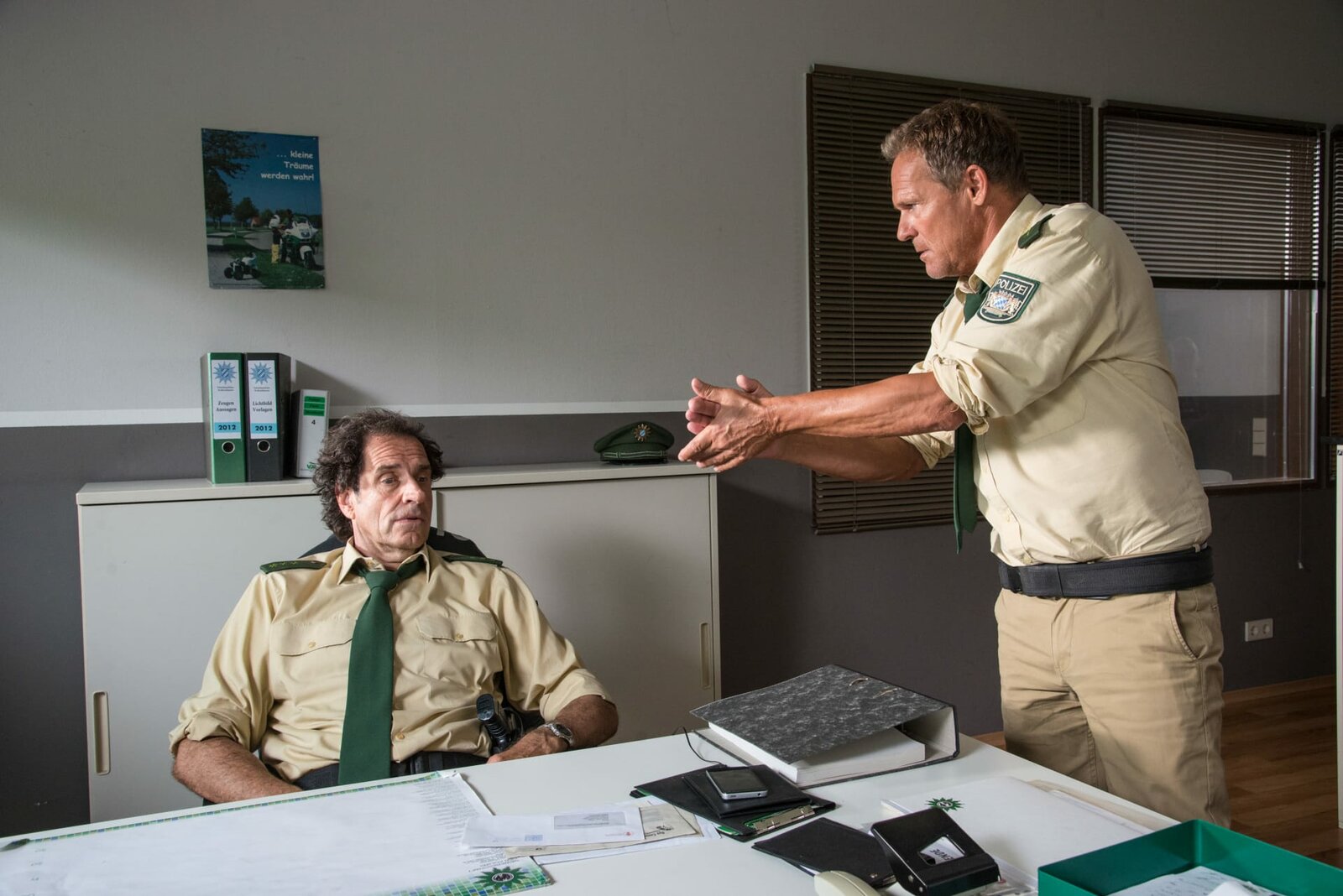 Heiliger ZornHubert (Helmfried von Lüttichau) und Staller (Christian Tramitz) überlegen, was mit Alois Berger geschehen sein könnteBild: © TMG / Chris Hirschhäuser