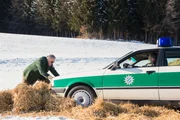 MarderschadenGirwidz (Michael Brandner, l.) ist ungeduldig und möchte trotz defekter Bremse mit dem Streifenwagen weiterfahren. Hubert (Christian Tramitz, r.) sitzt im Auto und lenkt.Bild: © 2021 Leonine / Kai Neunert / www.kai-neunert.com