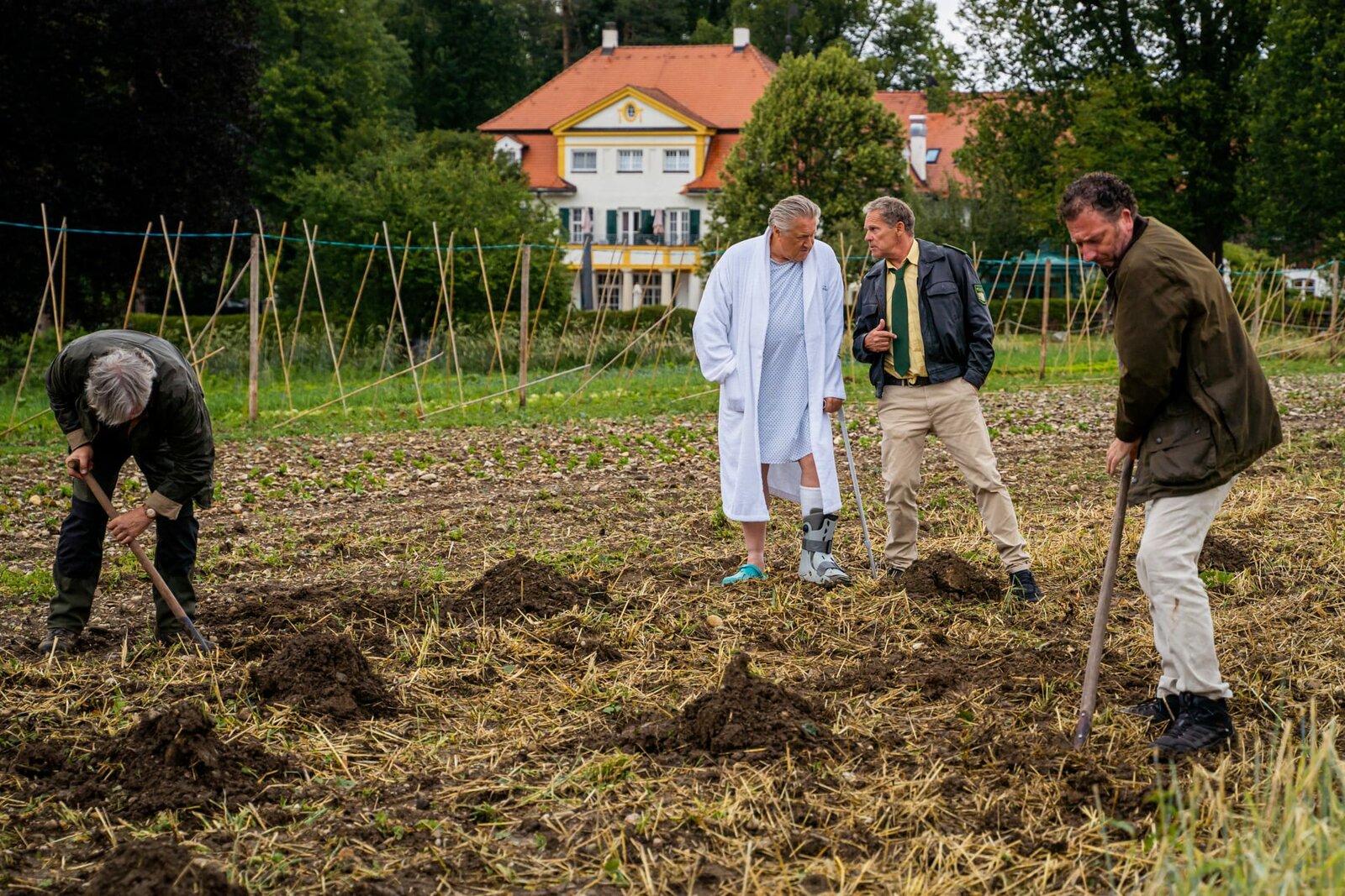 Der letzte AkkordHubert (Christian Tramitz, r.) und Staller (Helmfried von Lüttichau, 2.v.r.) ermitteln wieder auf Hochtouren.Bild: © LEONINE Studios