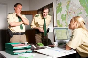 Tod im SchullandheimL-R: Hubert (Christian Tramitz), Staller (Helmfried von Lüttichau) und Sonja Wirth (Annette Fleischer)Bild: © TMG / Chris Hirschhäuser
