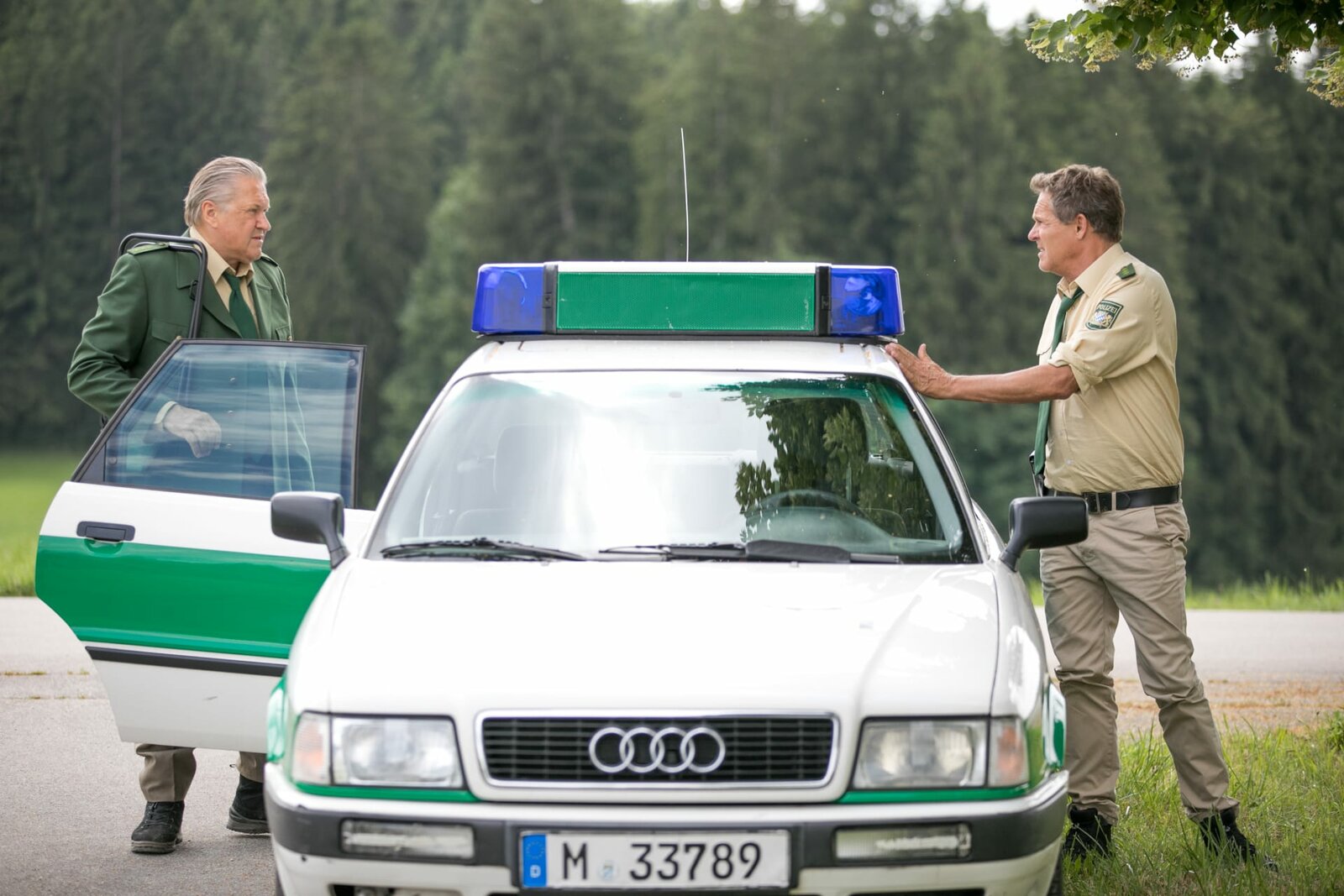 Omm, du bist totL-R: Jungpolizist Riedl (Paul Sedlmeir) und Staller (Helmfried von Lüttichau)Bild: © ServusTV Deutschland