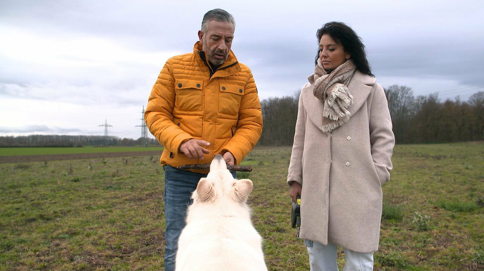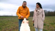 Schäferhund-Rüde Snow macht, was er will & Yorkshire Terrier-Hündin Frieda, Wirbelwind an der LeineHundecoach Andreas Ohligschläger (l) und Jenny beim Training mit ihrem weißen Schäferhund Snow.Bild: © WDR/Fernsehkraft UG / WDR Kommunikation/Redaktion Bild