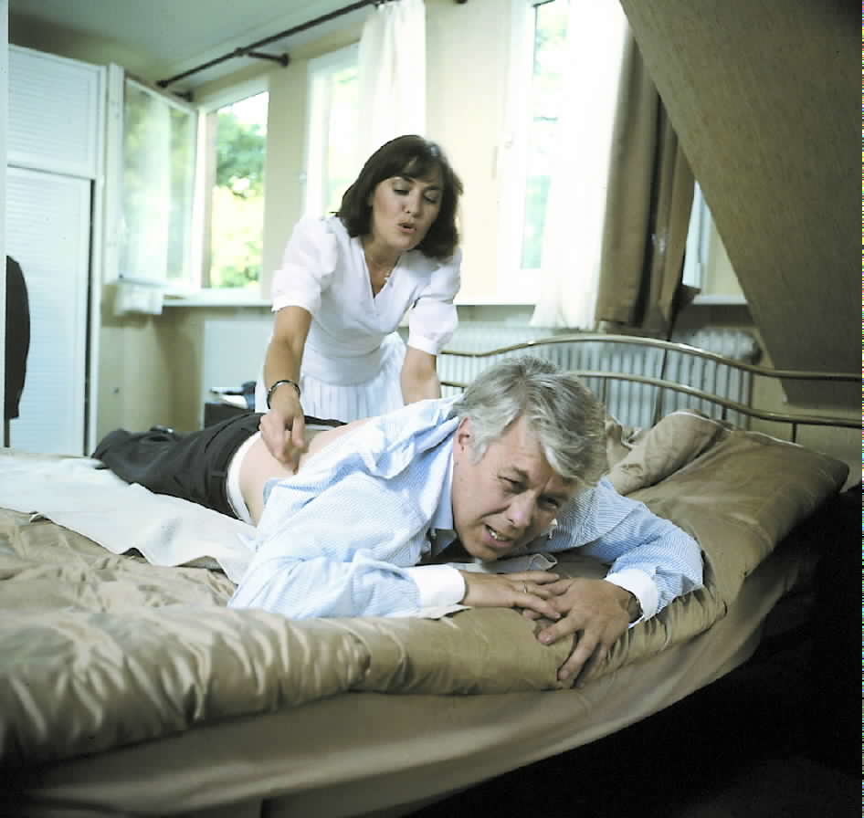Der fünfzigste GeburtstagÜberrascht wird Werner Schumann zu seinem 50ten Geburtstag auch durch einen Hexenschuß, den Angi versucht mit Hilfe einer Salbe sofort zu bekämpfen. (Peter Weck, Thekla Carola Wied).Bild: © ORF/ZDF/Barbara Oloffs
