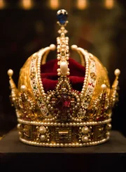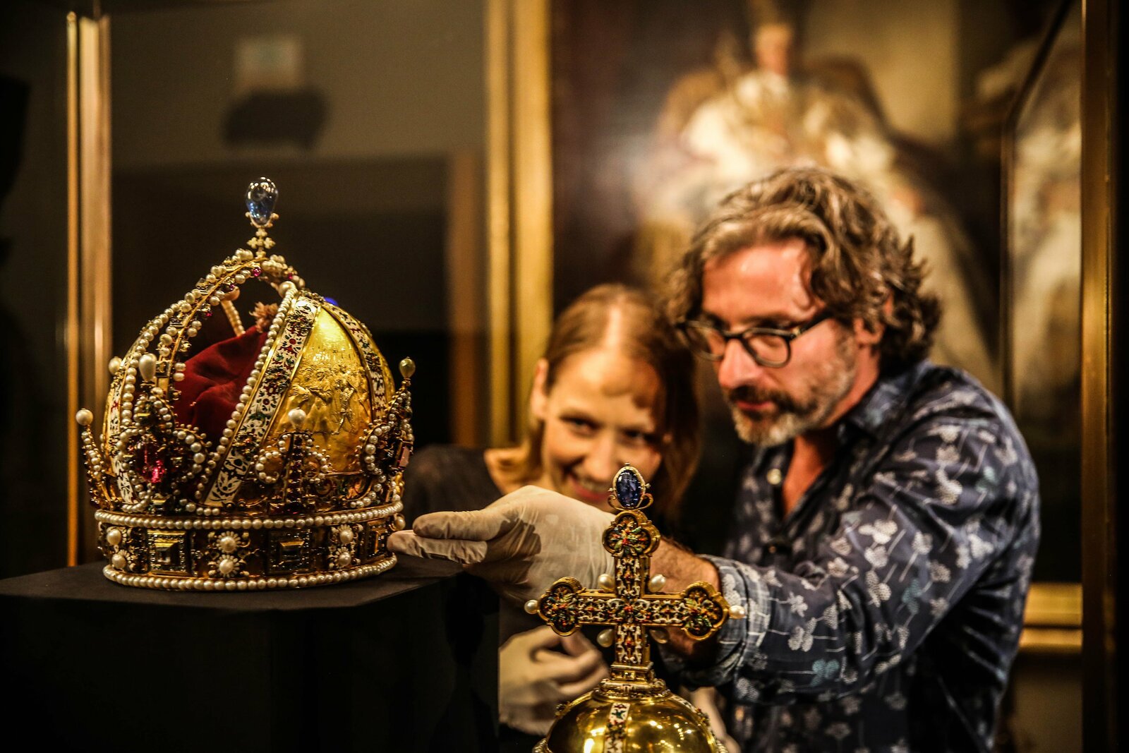 Die RudolfskroneRestauratorin Helene Hanzer und Kurator Paulus Rainer mit der Rudolfskrone.Bild: © ORF/pre tv/Katalin Hanappi