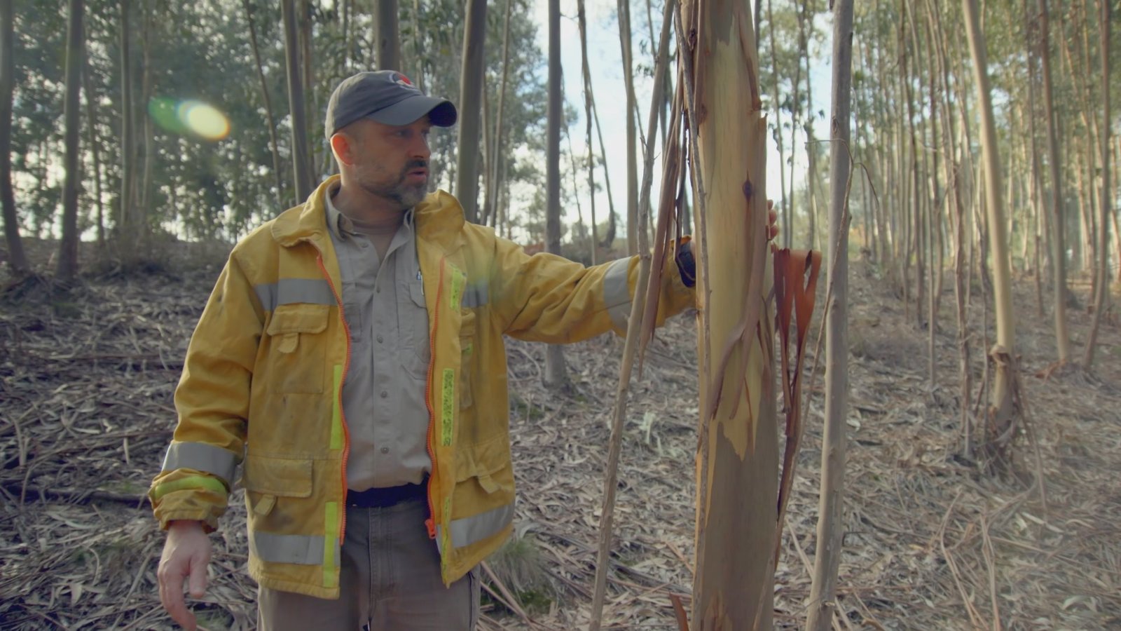 Grubenunglück in ChilePortugal - Alex Held of the European Forest Institute examines flammable Eucalyptus trees. (National Geographic)Bild: © National Geographic Lizenzbild frei