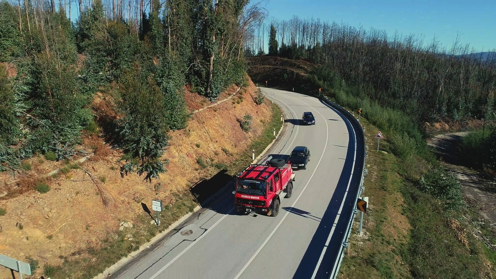 Inferno in PortugalPortugal - A fire truck drives down the N236, the road dubbed by the media as the Road of Death. (National Geographic)Bild: © National Geographic Lizenzbild frei